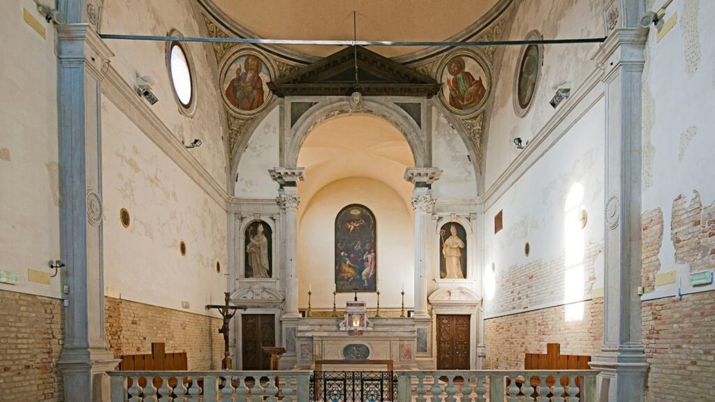 The rare surviving Veneto-Byzantine church of San Nicolo dei Mendicoli with its richly ornate interior, has been associated with Venice in Peril since 1972. After damaging flooding in 2019, a further project of flood defence is being funded by the Acqua Alta 2019 Appeal.