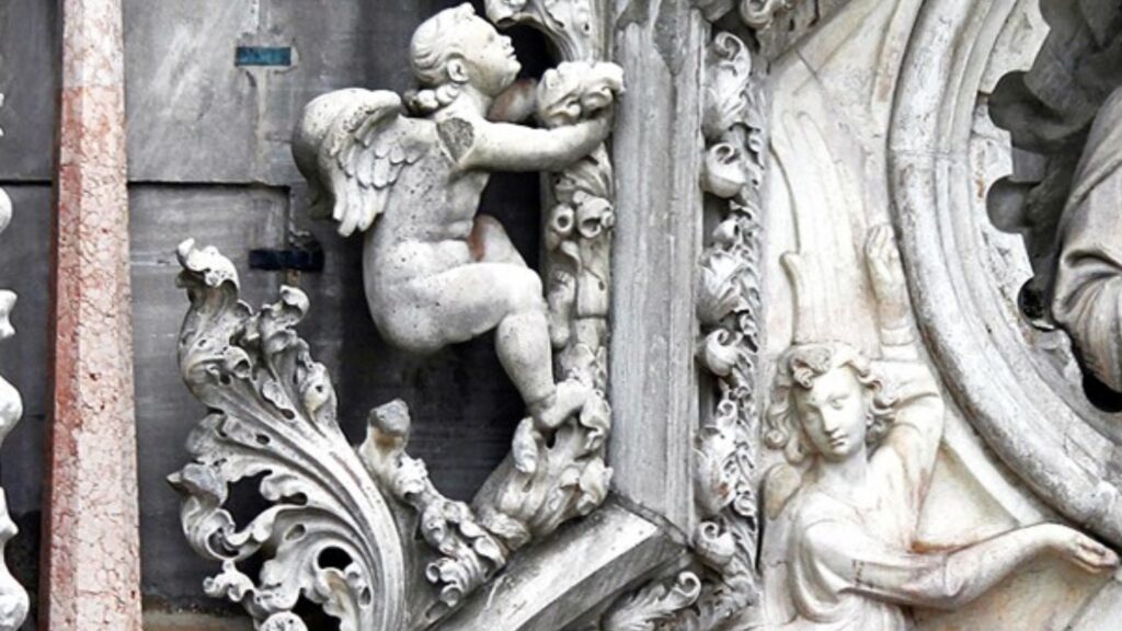 Stonework conservation of the finely carved 14th and 15th century capitals from the colonnade of the Palazzo Ducale facing the lagoon and the piazza. Much admired by Ruskin. Now in the Museo dell’Opera.