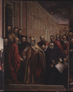The chief glory is its cycle of eight paintings by Jacopo Palma the Younger, begun in 1583 and completed in 1592, which tells the story of the Order of the Crociferi from its founding by Pope Anacletus to provide for pilgrims and the sick. The main cycle and ceiling paintings were conserved by the Venice Superintendency and funded by the Ministry of Culture.